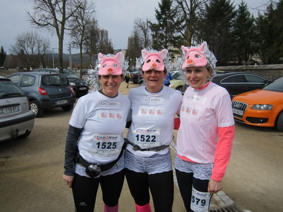 Le même jour que l'Ecotrail de Paris, Isabelle R., Sélina et Kilian accompagnés de leur famille participaient aux 10 kilomètres de Nuits Saint Georges. Course festive, puisque Isa avec Alexandra et Estelle a remporté le 1er prix des déguisements (voir la photo!). Sélina, pour son premier 10 kimomètres a réalisé un chrono de 1H09' et pris la 2ème place cadette.