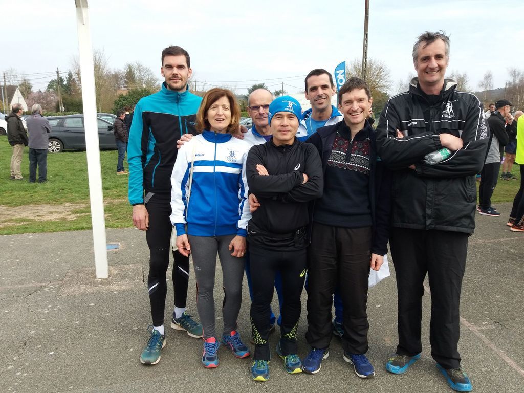 Sur le 23 kms, Adrien et Fred prenaient le départ pour faire une sortie longue inscrite sur le plan du prochain marathon de Sénart, alors que Santé, inscrit par son entreprise, pensait lui aussi à l'échéance de Niederbronn les bains. Si Adrien et Santé se rassuraient en vue de leurs objectifs, Fred assurait le 2ème podium du jour avec une 8ème place au scratch et une 3ème en seniors. Si ma mémoire ne me fait pas défaut, je pense que c'est le premier podium masculin de l'association. Alors, BRAVO à Fred et à tous les participants du jour!