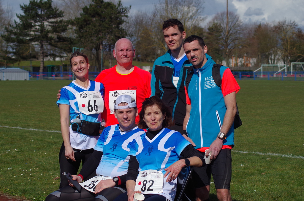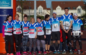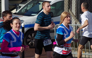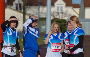 Sur le semi qui partait 15 minutes plus tard, nous avions aussi 6 adhérents: Sabine et Yolande, ainsi que Franck, Fred, Adrien, et Ludo. Les 3 dderniers avaient fait de cette course un objectif chronomètrique,mais également une préparation en vue du marathon de Sénart.Yolande voulait refaire cette distance qu'elle n'avait plus courue depuis longtemps, et Sabine et Franck partaient sans préparation spécifique pour leur premier semi.Bien entendu, tout le monde passera la ligne d'arrivée avec des objectifs plus ou moins atteints. Félicitations également à vous 6!